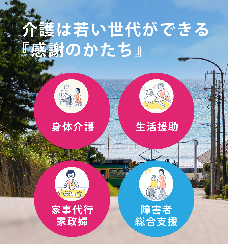 一人ひとりのご希望に寄り添いながら 住み慣れた地域での日常生活をサポートします PROCARE NEWS 10月4日 弊社は第15回オールジャパンケアコンテストに参加しました!! (2025/10/31)ホームページを開設いたしました。 (2025/09/15)開所いたしました。 (2025/09/01) サービスエリア 鎌倉市、藤沢市、逗子市、葉山町、茅ヶ崎市、横浜市の一部地域(栄区、金沢区、磯子区、港南区、戸塚区、泉区) 主なサービス紹介 高齢者向けサービス ① 身体介護 入浴介助 /排せつ介助 /食事介助/更衣介助/移動介助 /服薬介助 ② 生活援助 入浴介助 /排せつ介助 /食事介助/更衣介助/移動介助 /服薬介助 ③ 家事代行・家政婦 経験豊富なヘルパーが身の回りの家事も代行いたします。●高齢者の見守りや生活支援●調理、掃除、洗濯 ゴミ出しの家事全般 ① 身体介護 入浴介助 /排せつ介助 /食事介助/更衣介助/移動介助 /服薬介助 ② 生活援助 入浴介助 /排せつ介助 /食事介助/更衣介助/移動介助 /服薬介助 ③ 家事代行・家政婦 経験豊富なヘルパーが身の回りの家事も代行いたします。●高齢者の見守りや生活支援●調理、掃除、洗濯、ゴミ出しの家事全般 障害者向けサービス 障害者総合支援 ●居宅介護 ●重度訪問介護 ●移動支援 お問い合わせ